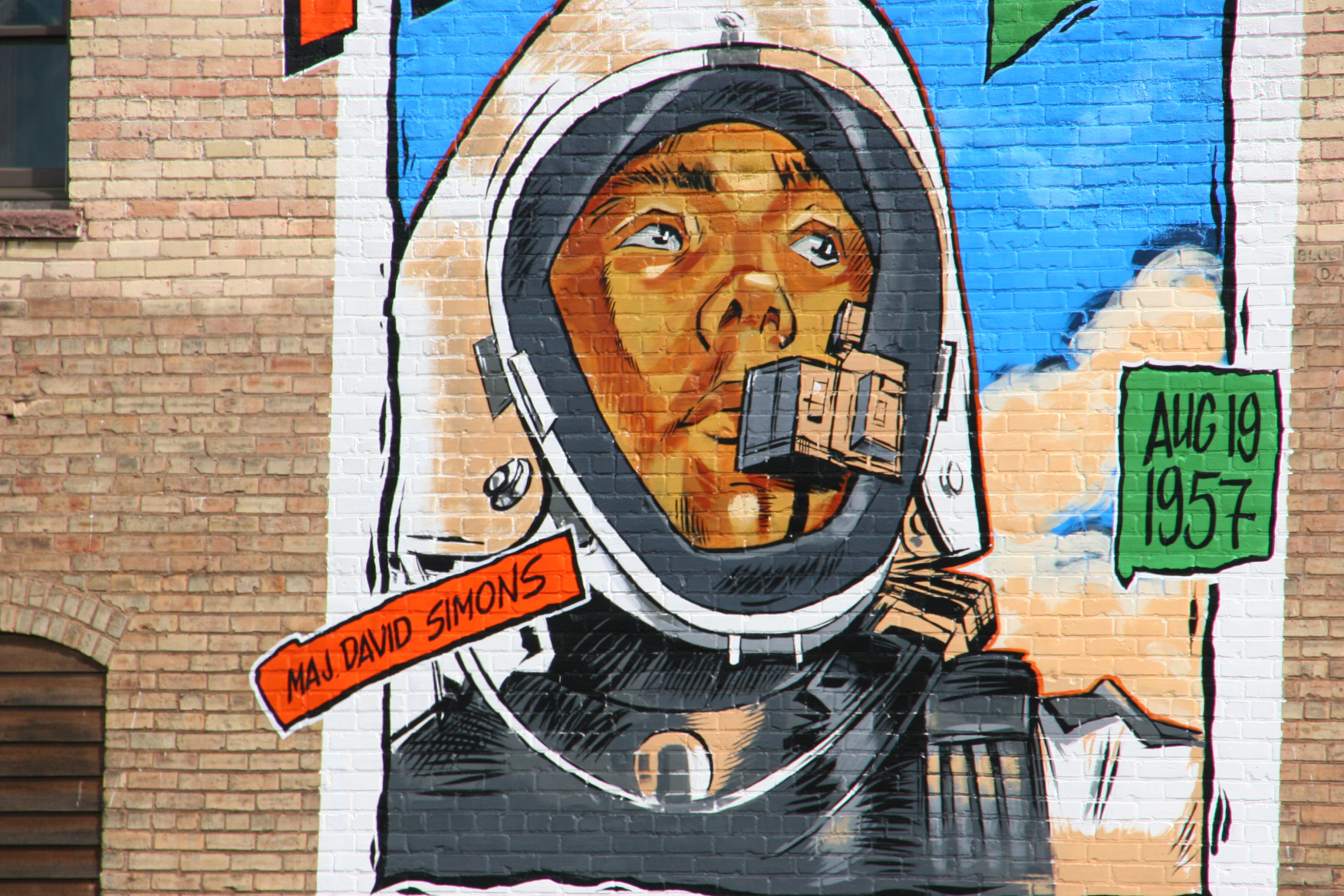 That Minnesota played an important role in the U.S. efforts to win that race is significant. And, of all places, this happened in an iron mine pit outside a small mining community on the Cuyuna Range. A 200-foot wide paper-thin balloon holding 3 million cubic feet of helium lifted the capsule skyward from the base of the Portsmouth iron mine pit. Eventually the spaceship landed in a flax field near the North Dakota/South Dakota border. And, as our tour guide Tim told me, Simons was met by a rancher and a young boy on horseback. That boy showed more interested in an arriving helicopter than the capsule, so the story goes.