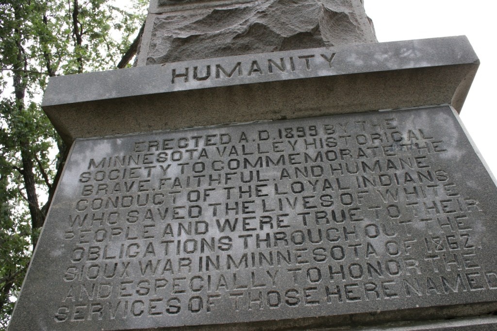The Loyal Indian Monument at Birch Coulee Monument near Morton honors Native Americans and features strong words like humanity, patriotism, fidelity and courage. Minnesota Prairie Roots file photo 2010.