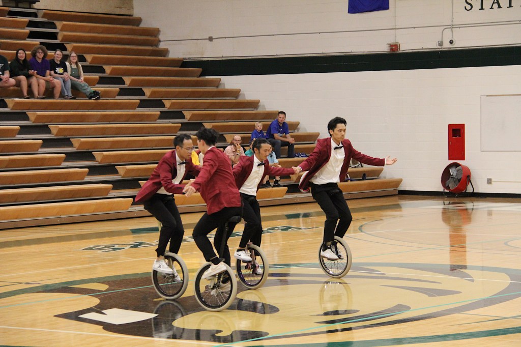 A graceful freestyle performance by Japanese unicyclists reminded me of ballet. (Minnesota Prairie Roots copyrighted photo July 2024)
