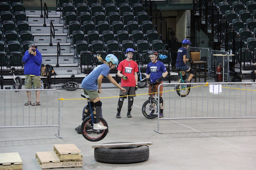 I also watched several teams from Germany and a family of three from The Wonders Unicycle Club participate in the Freestyle group competition.