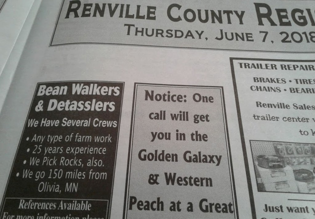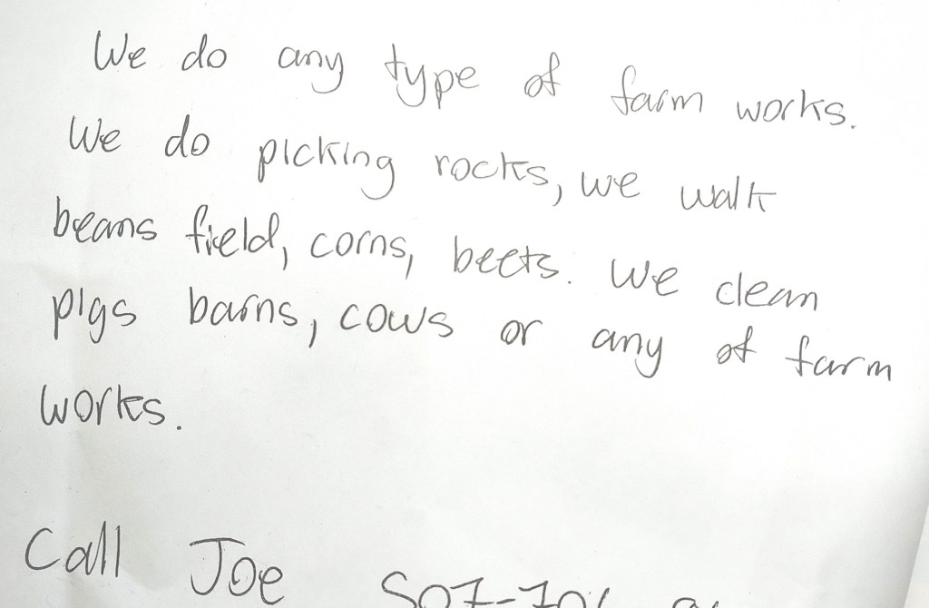 Recently, I saw a sign, more like a note, posted by Joe on a convenience store bulletin board in Redwood Falls, deep in the heart of southwestern Minnesota farm country. I grew up in that area, on a crop and dairy farm.