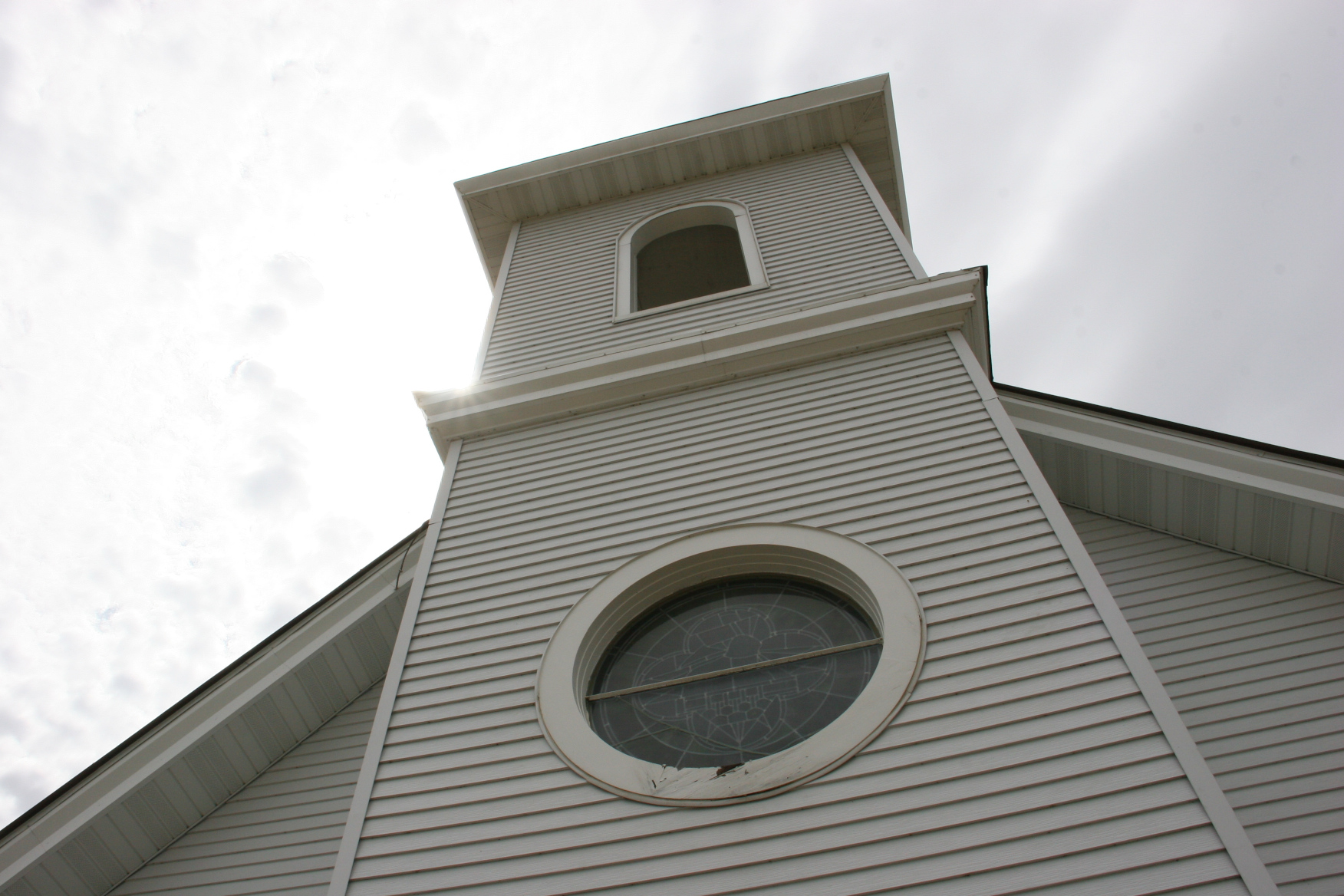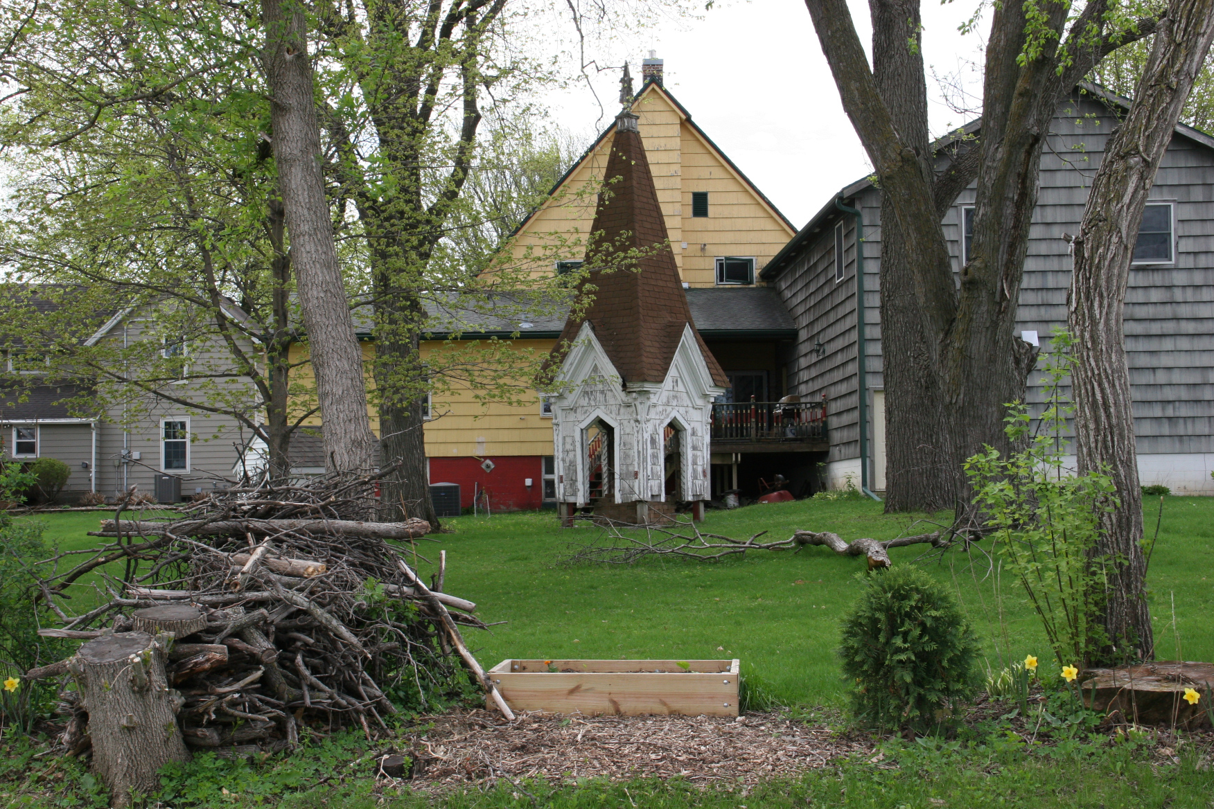 On a recent walk-about through the downtown area, I came upon a church steeple. Not atop a church, but rather in a residential backyard. I have no idea what the story may be behind its placement there or what the homeowners have planned for the structure. But I found the entire scene interesting.