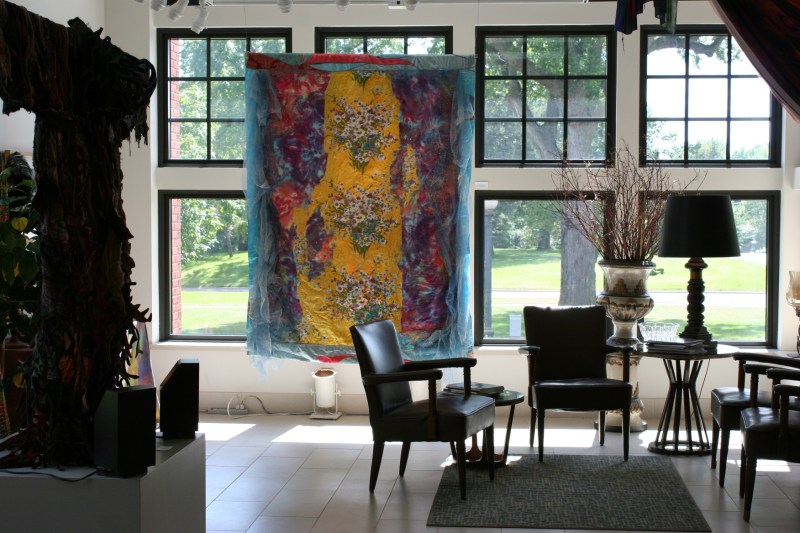 Kuehn, whose credentials include “a revered member and teacher at Minnesota’s Textile Center” and recipient of many awards in multiple art forms, impresses. As I meandered among the numerous pieces on display, I felt as if I was peering through a kaleidoscope of ever-shifting patterns and colors. The drape and seamless flow of fabric spoke poetry to me. I am not artistically knowledgeable enough to understand the processes of Kuehn’s work. But I see, enjoy and appreciate the creativity of an artist clearly passionate about creating art.