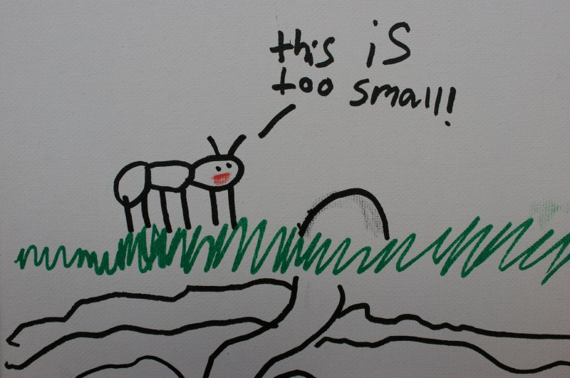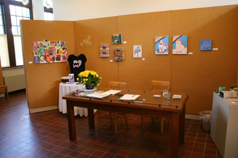 Down the hall from Kuehn’s exhibit, the art of youth and their mentors highlights the Big Brothers/Big Sisters program. In the artwork, I see friendships forged, joy in bold colors, the authenticity of an artist in handprinted block letters. I especially like the featured quote: Art is everywhere—even in the simplest of friendships.