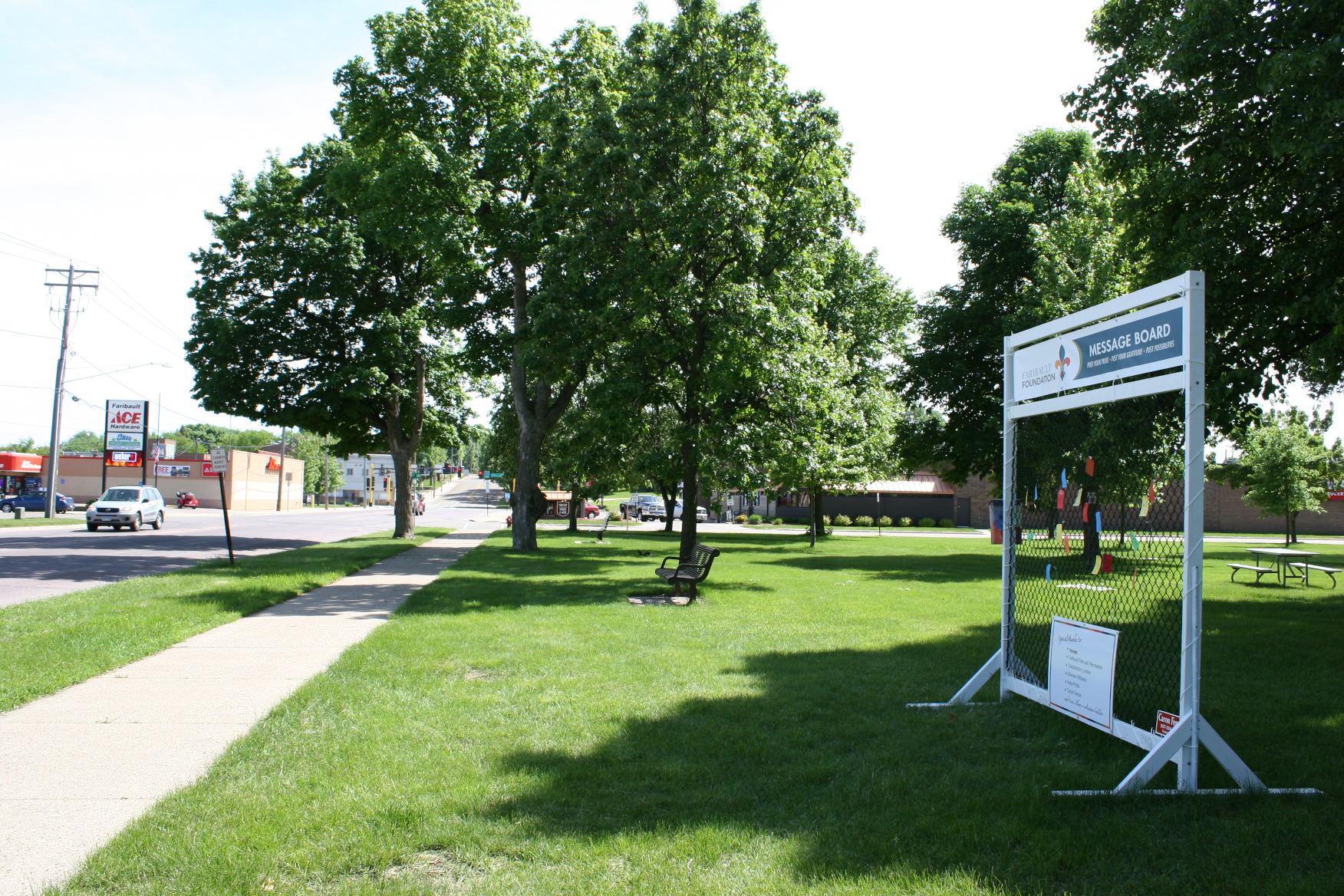 The Faribault Foundation, which aims to promote and enhance the quality of life for the greater Faribault area, recently developed and then crafted a portable public board from wood and fencing and stationed it along Second Avenue NW in Central Park.