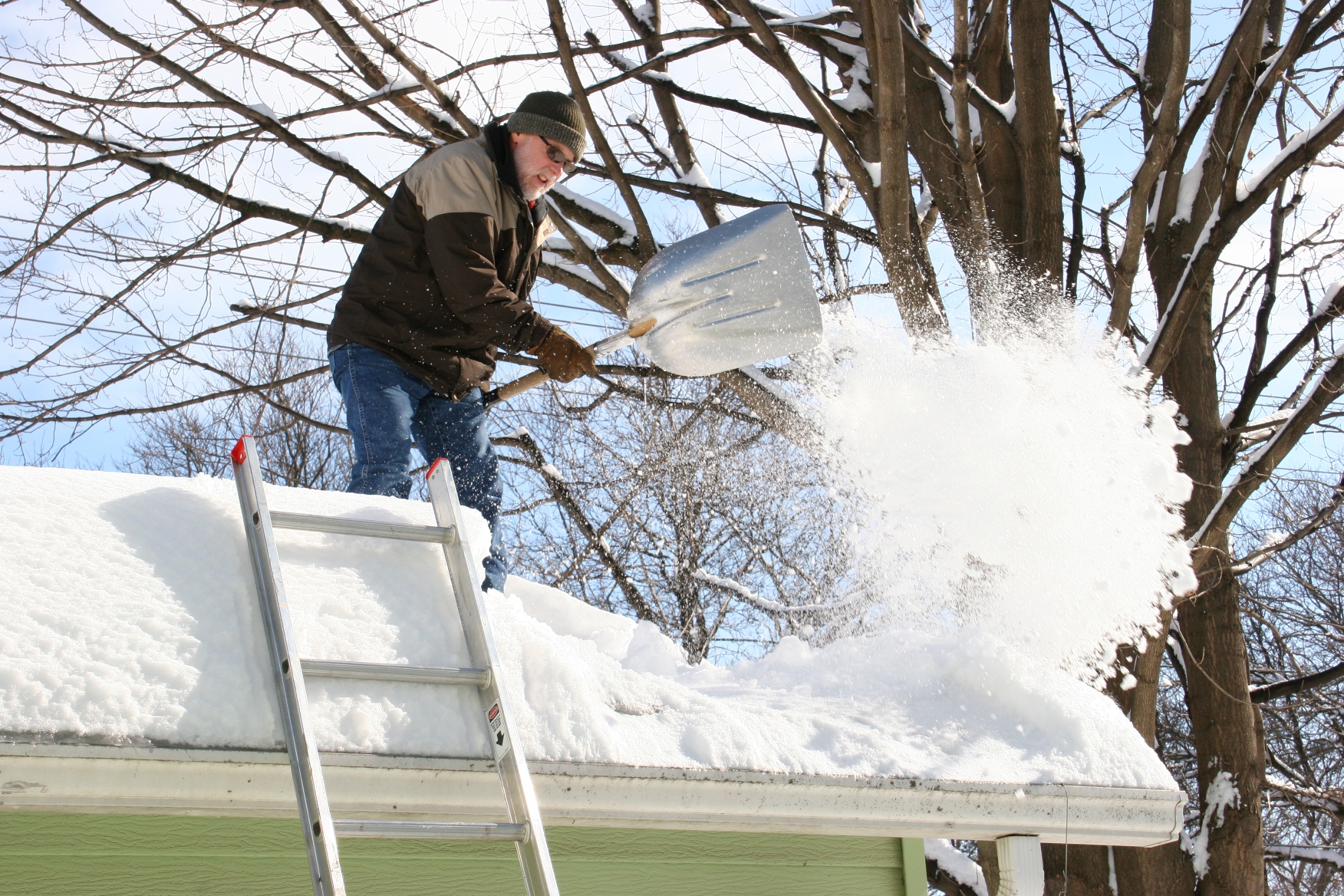 Randy shovels snow from our house rooftop during a previous winter. (Minnesota Prairie Roots copyrighted file photo)