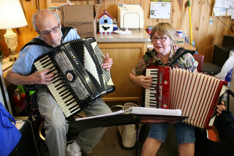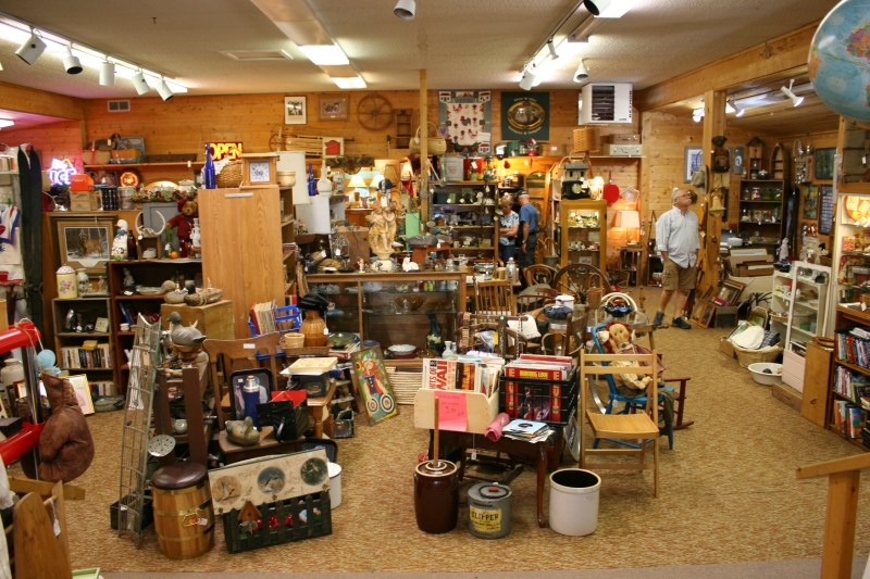 After you visit a few antique shops, they often blend into a sameness of overstocked shelves in too tight quarters. But the Flour Sack I’ll remember for the two musicians squeezing music from boxes while seated behind the front counter.