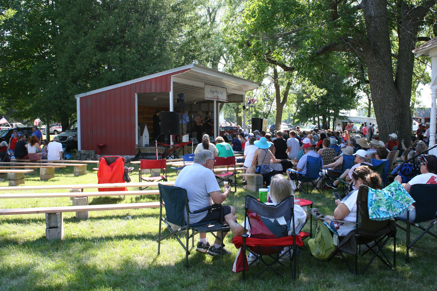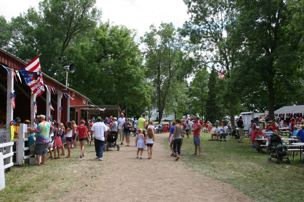 Kids’ activities are to the left, food and beverage stands to the right and the entertainment stage straight ahead at the North Morristown July 4 festival grounds. Minnesota Prairie Roots file photo.