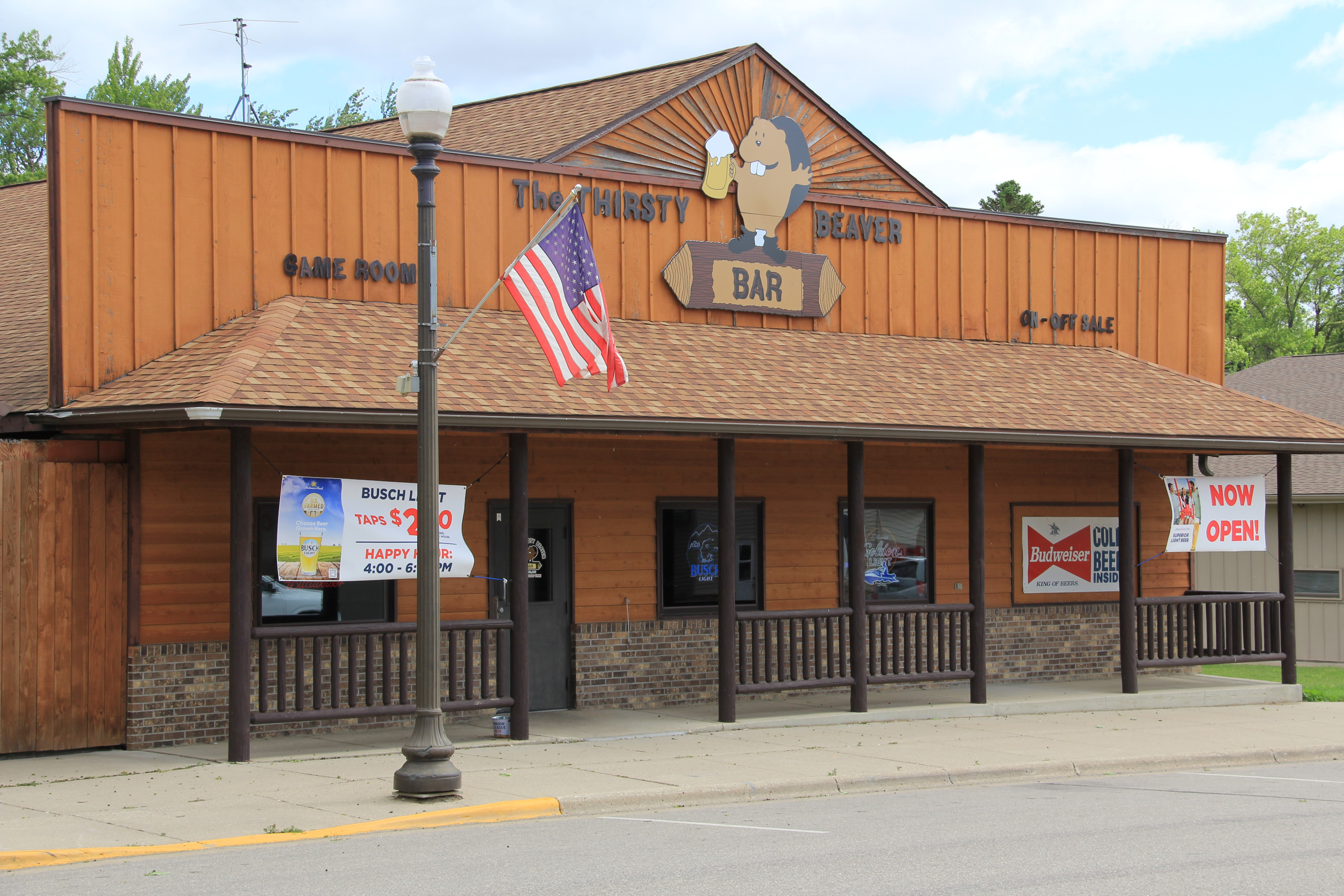 Flying the flag outside The Thirsty Beaver. (Minnesota Prairie Roots copyrighted photo June 2024)