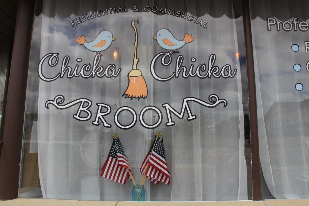Even small flags like this in the storefront window of a cleaning service make an impact. (Minnesota Prairie Roots copyrighted photo June 2024)