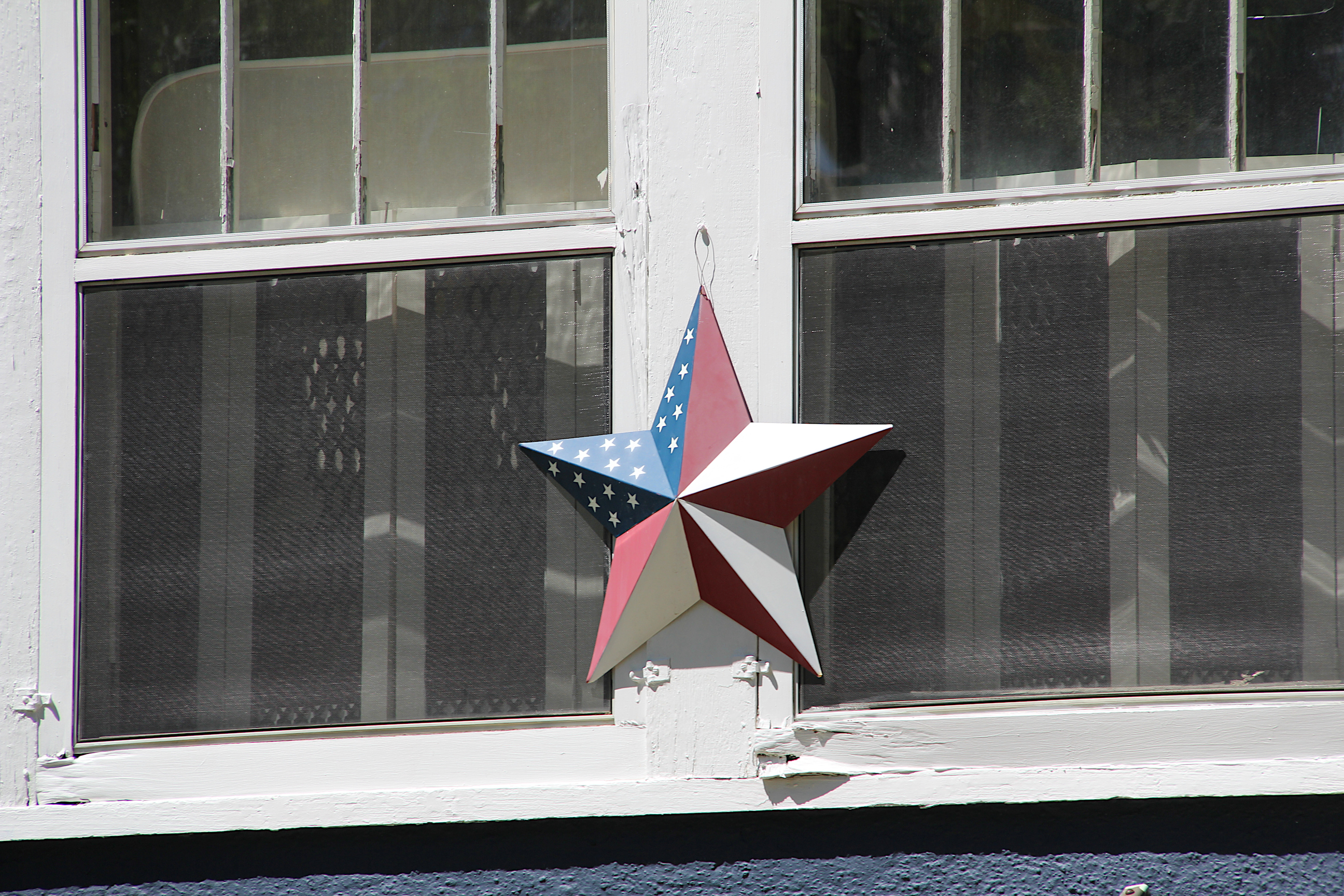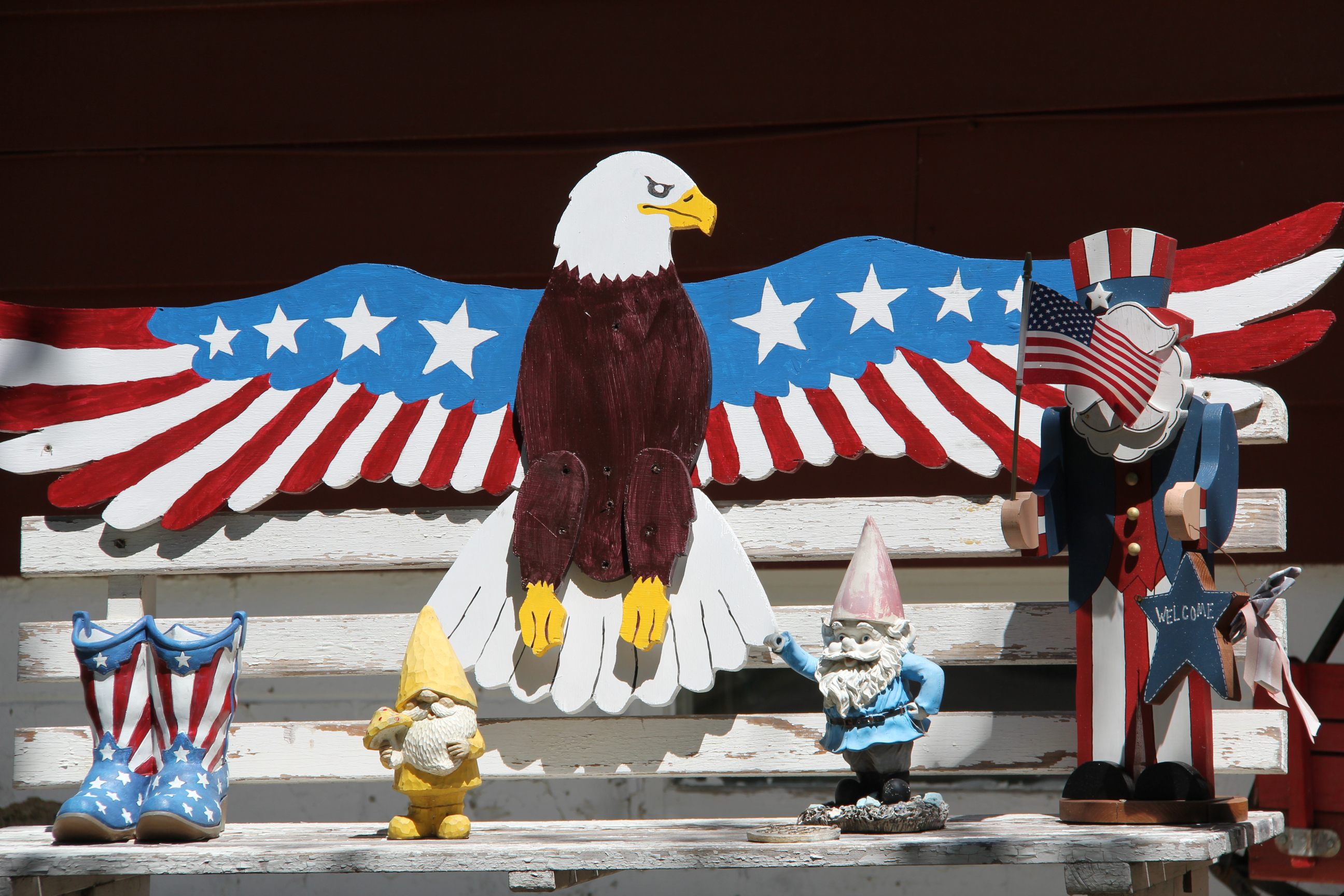 Flags fly. Kitschy yard art celebrates the Fourth. Even inside a thrift store, American pride shows.