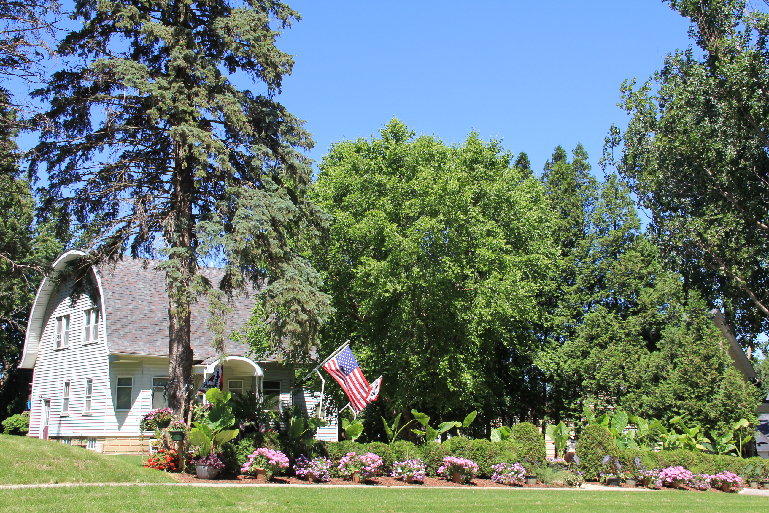 A stunning house along Red Wing Avenue showcases beautiful landscaping and the red-white-and-blue. (Minnesota Prairie Roots copyrighted photo June 2024)