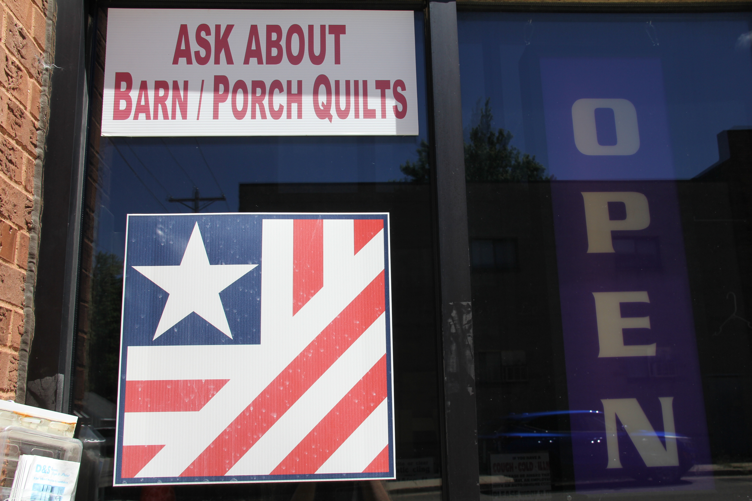 A patriotic barn and porch quilt, available at D & S Banner, Sign & Print. (Minnesota Prairie Roots copyrighted photo June 2024)