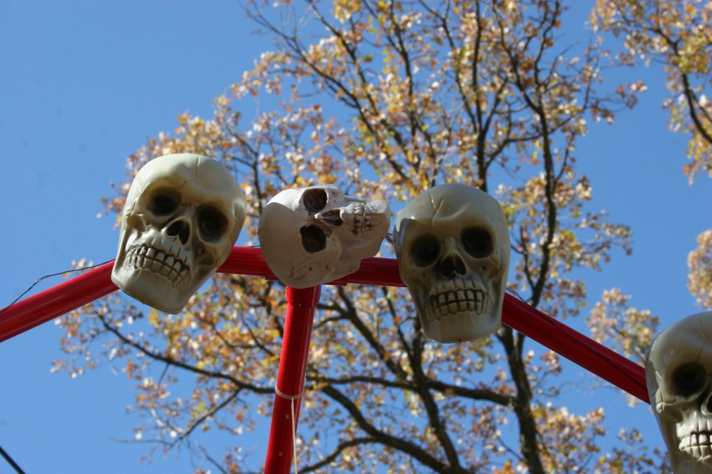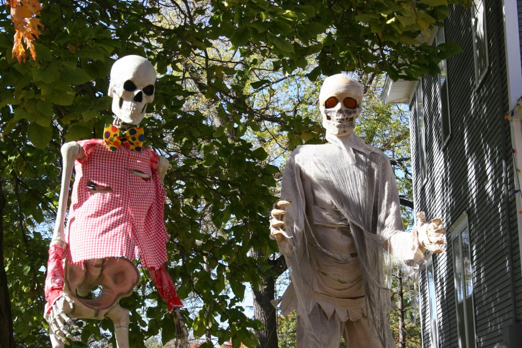 Skeletons and skulls seem to play big into this season’s Halloween décor. Maybe they always have. Whatever, they fit the fear factor.