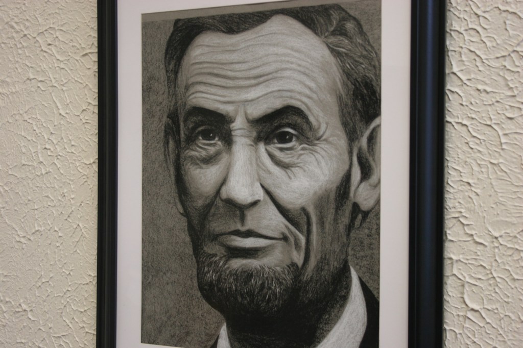 From Caldwell’s exhibit, I turned the corner to look at the acrylic paintings of Angelina Dornquast, a recent Waterville-Elysian-Morristown High School graduate. To think that someone this young can be this talented in portraiture impresses me. I thought in my head, “Wow, this girl can paint!” Plus, I sensed the confidence this young artist has in herself and in her work. That shines.