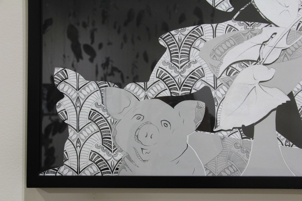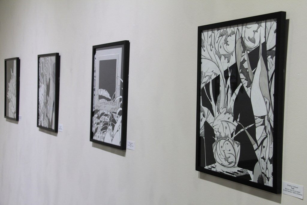 Then, as now, plants focus her art. She combines drawings of natural subjects with abstract drawings to create art that is signature identifiable as hers. This time Caldwell worked with micron pen and cut paper to craft black-and-white framed pieces rather than artfully staging spider plants.
