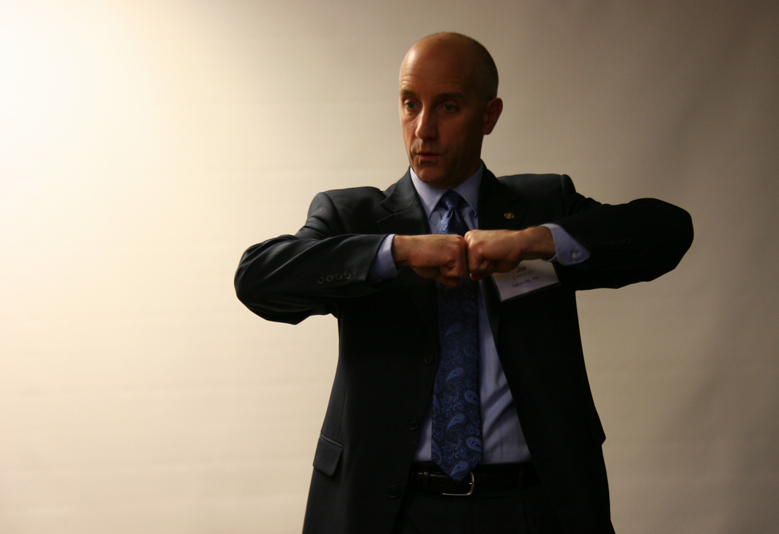 Diver Jim Christian gestures as he provides information on the iron ore carrier and theories on what caused The Fitz to sink.
