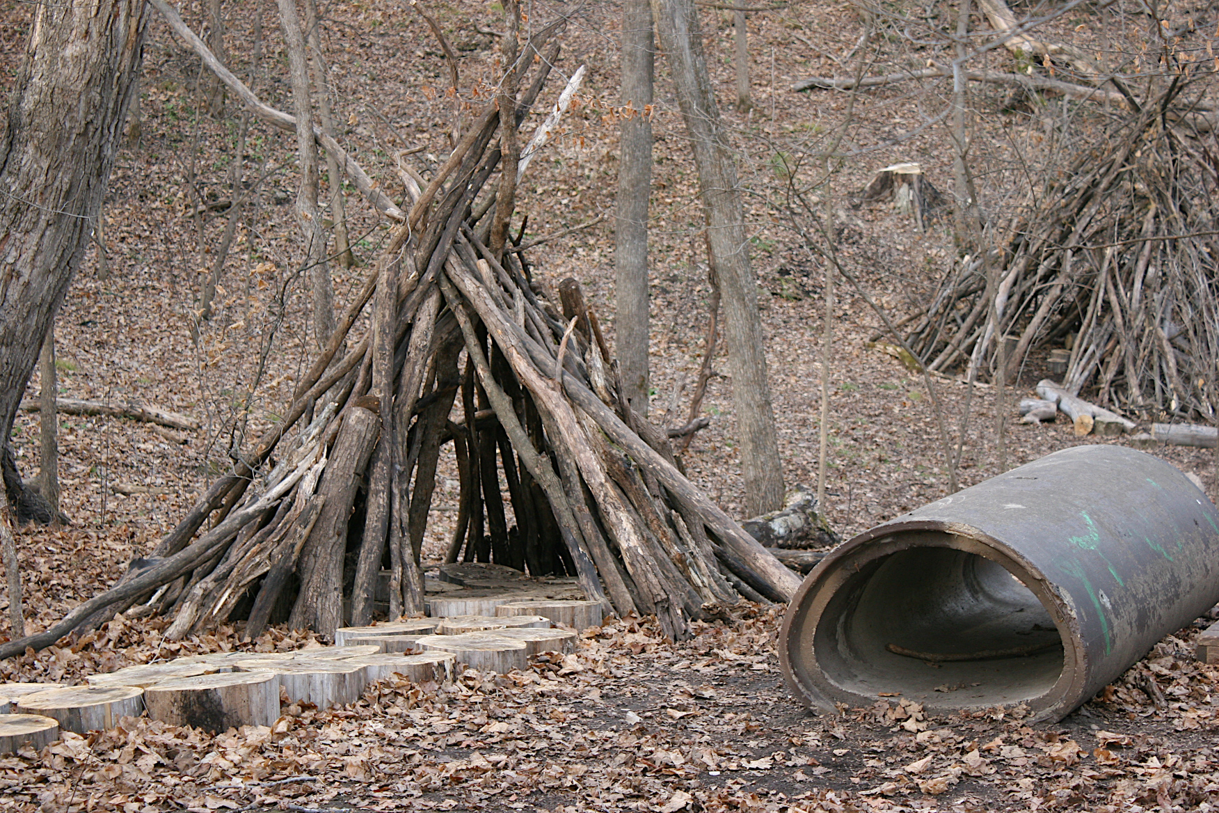 Fallen branches at River Bend angled into a shelter resemble those built by me and my siblings. We also constructed buildings by looping baler twine around tree trunks. And we crafted a house, too, from discarded wire fencing. Oh, the imaginations of farm kids let loose in the grove.