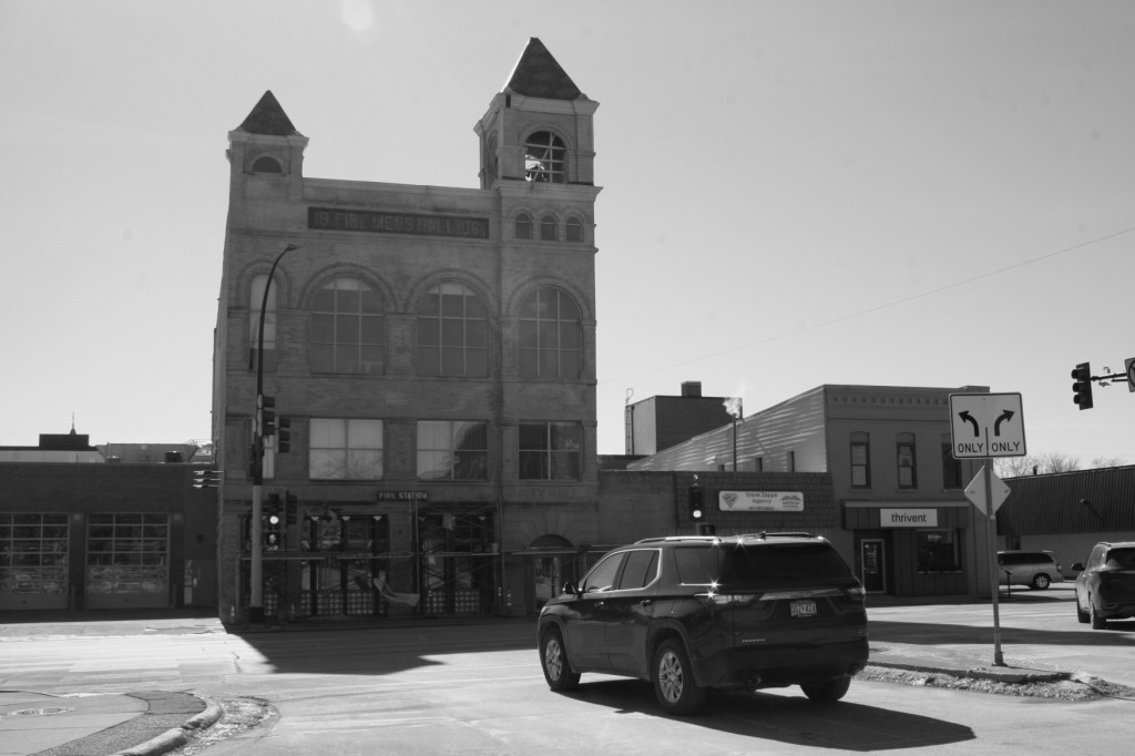 Firemen’s Hall, constructed 1906-1907 for $19,643, sits just across the street from Central Park. (Minnesota Prairie Roots copyrighted photo February 2022)