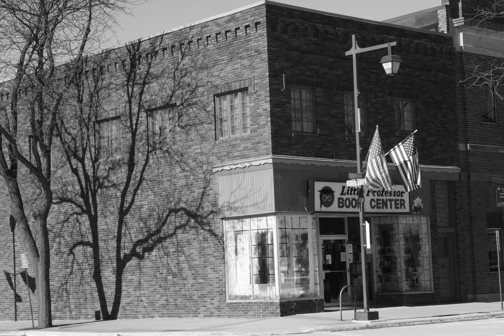 This home-grown bookstore anchors a downtown corner, directly across from Central Park. (Minnesota Prairie Roots copyrighted photo February 2022)