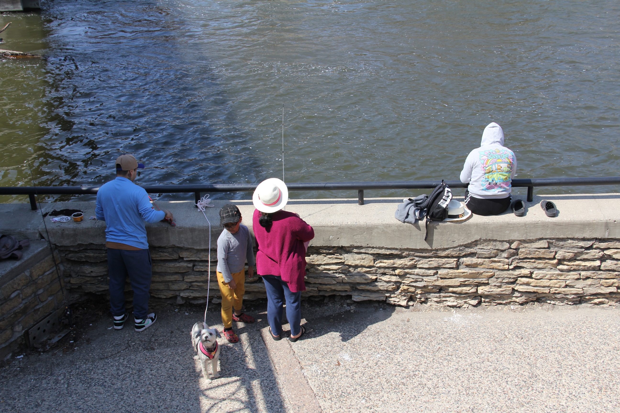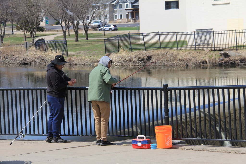 Fishing by the Ames Mill dam. (Minnesota Prairie Roots copyrighted photo April 2025)