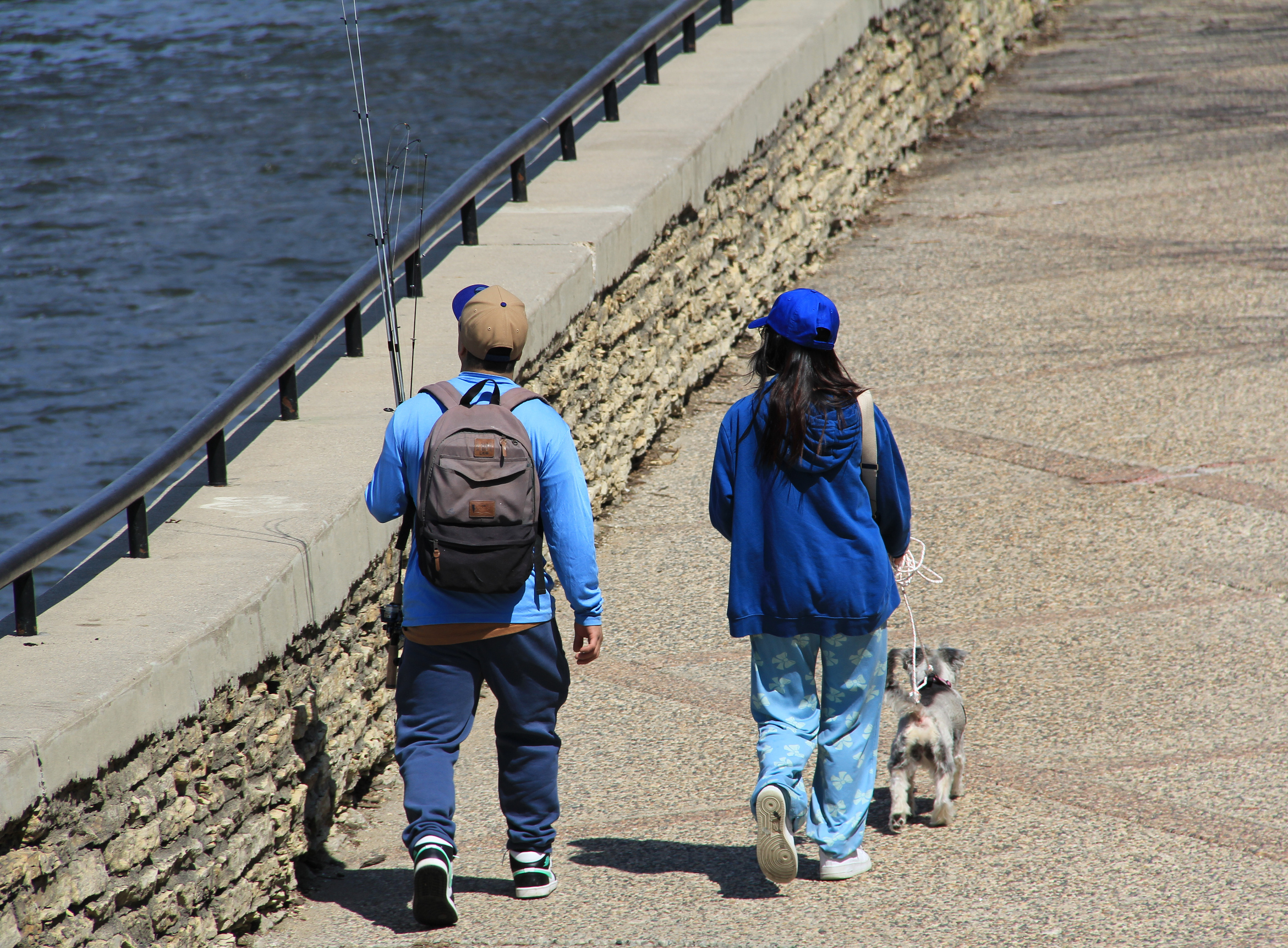 The mood feels anticipatory, joyful, as we walk ourselves, and some their dogs, along the riverside path.