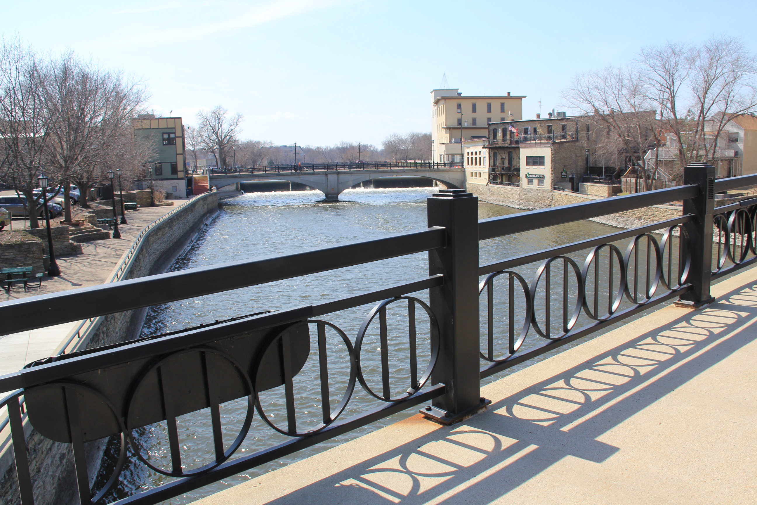 WE COME TO THE RIVER. The Cannon River, spilling over the dam by the Ames Mill. Roaring. Churning. Then flowing under the bridge and between the walls of the Riverwalk in downtown Northfield.