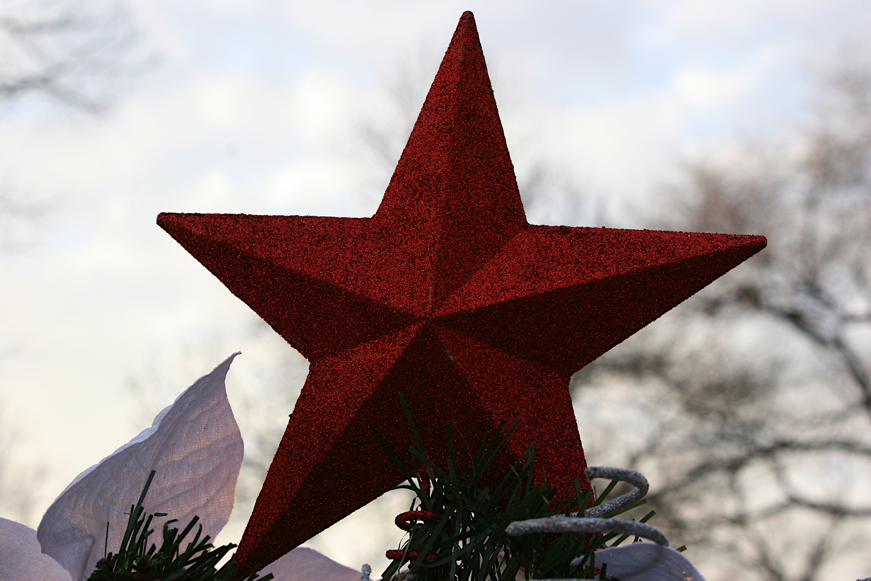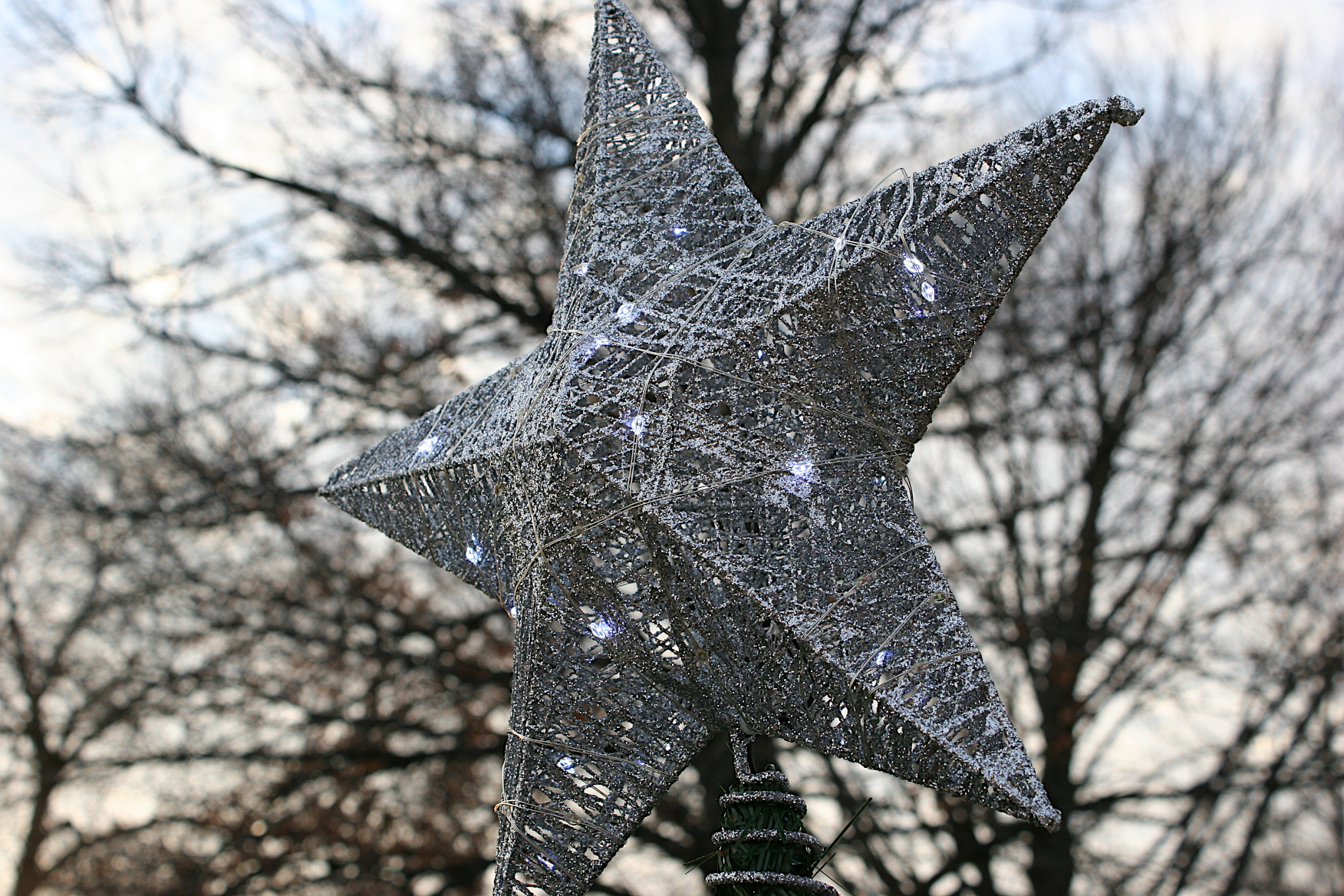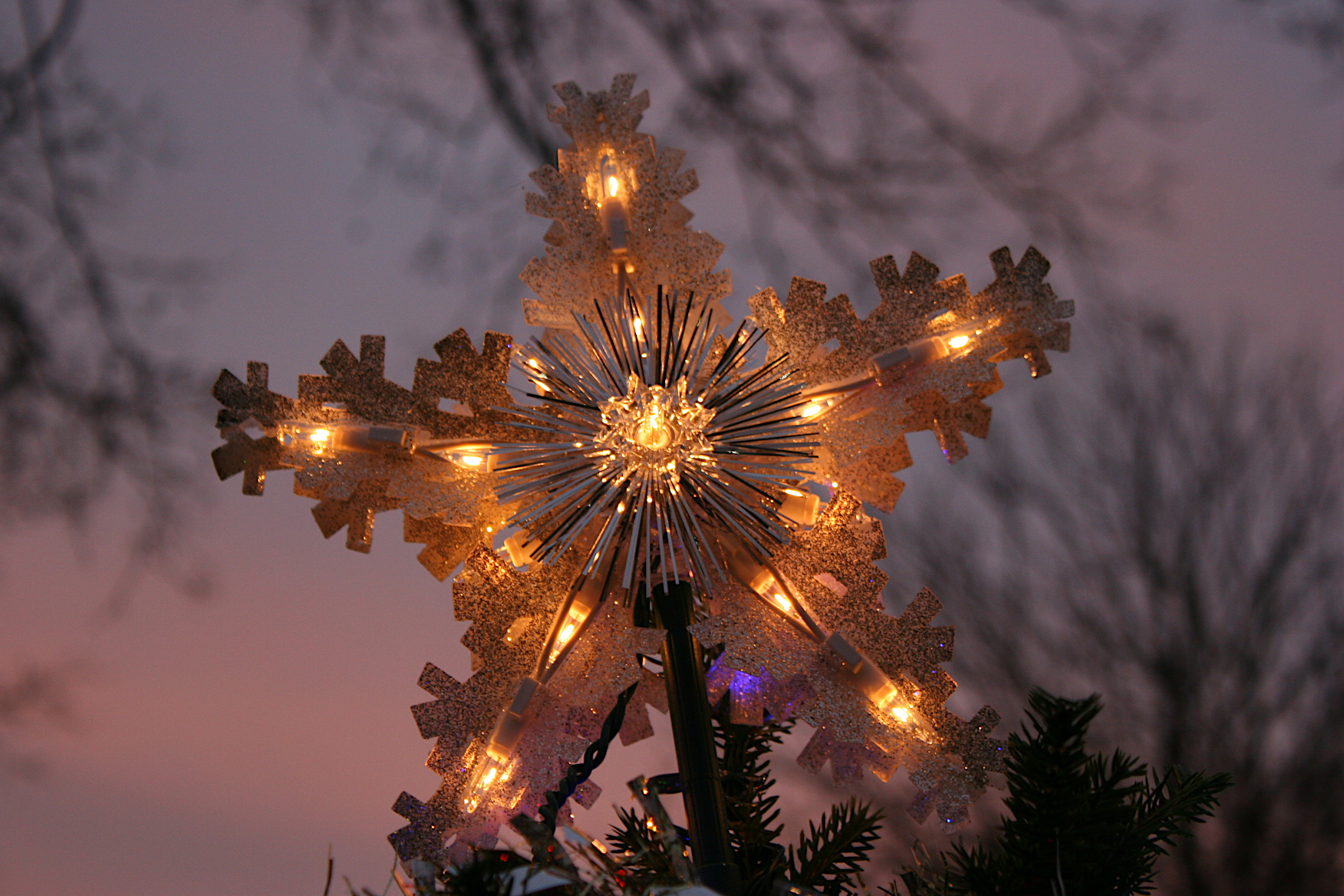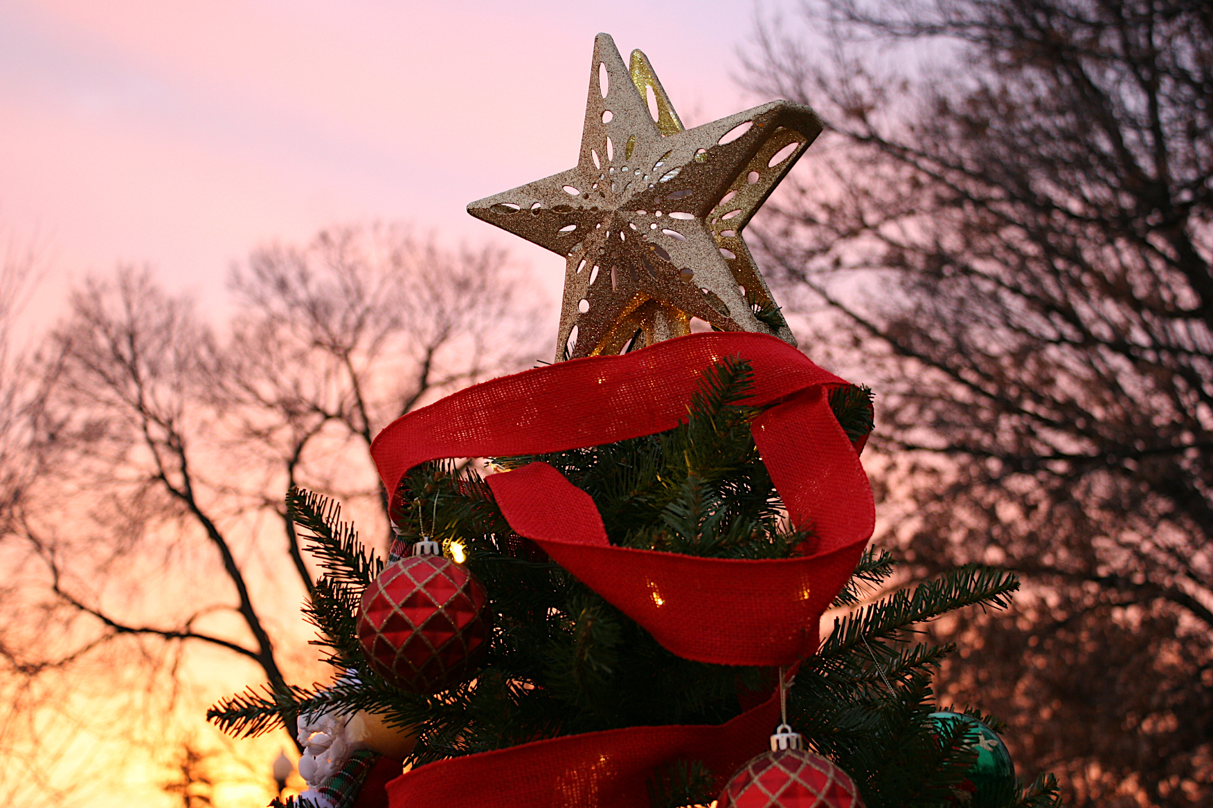 A star shines atop a tree at Central Park as the sun sets Saturday evening.