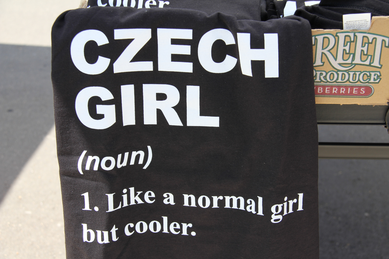 Then there’s the t-shirt I saw for sale earlier this year at a Czech celebration in Montgomery. In white letters on black fabric, the noun, Czech girl, was defined “like a normal girl but cooler.” I guess I will never be Czech cool since my heritage is German.