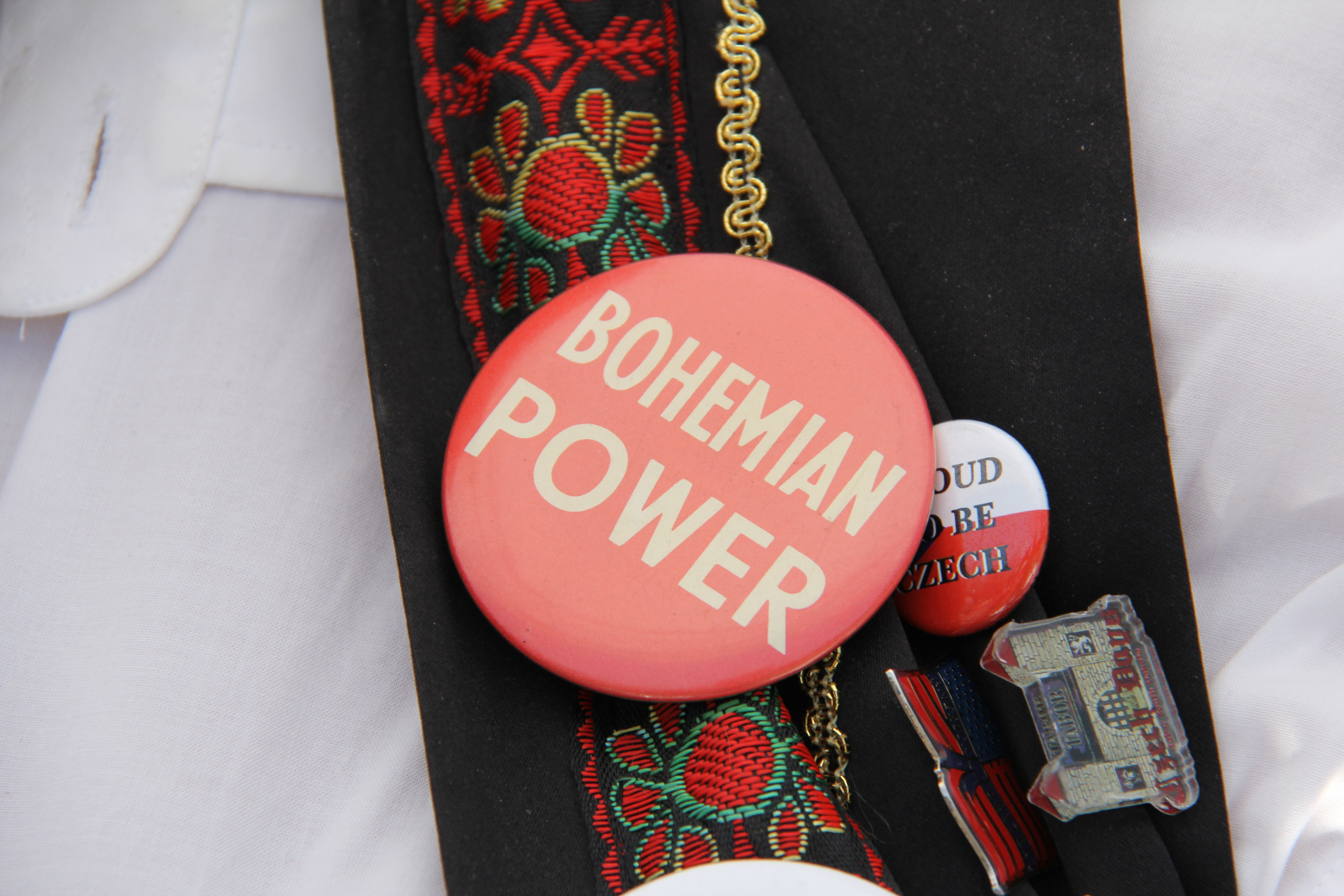 Nor will I hold Bohemian power or pride as printed on two buttons worn by a man in traditional Czech attire at the same Montgomery event. He was in the right place, Minnesota’s Czech triangle, to be sporting those ethnic-proud buttons.