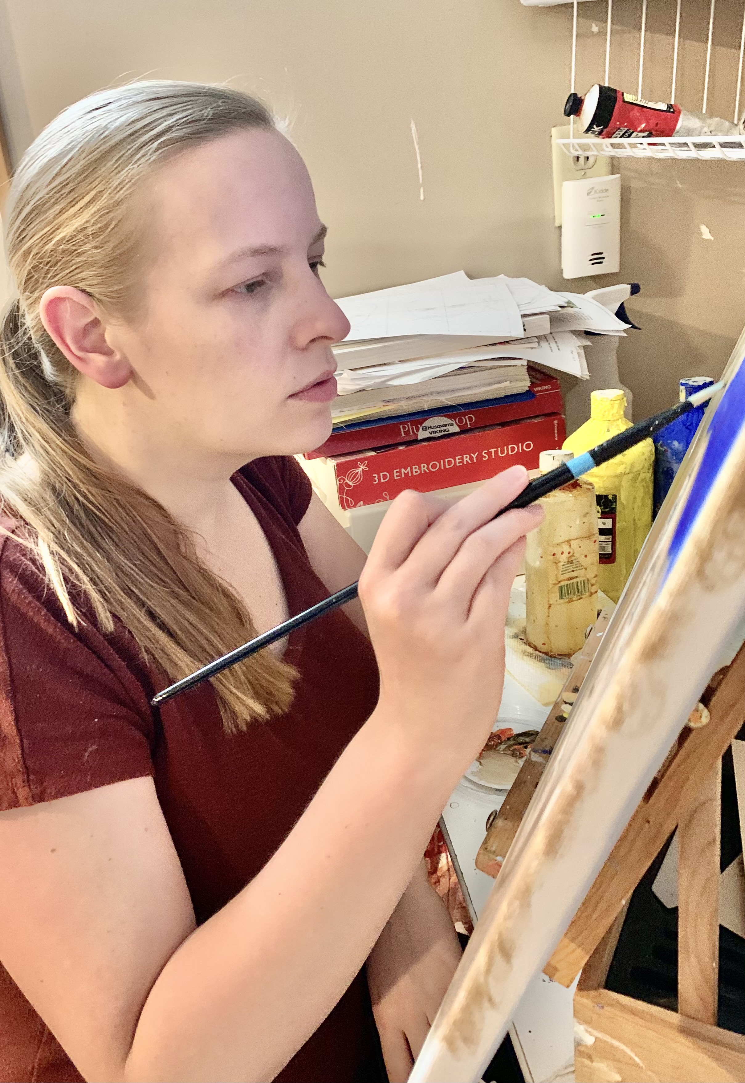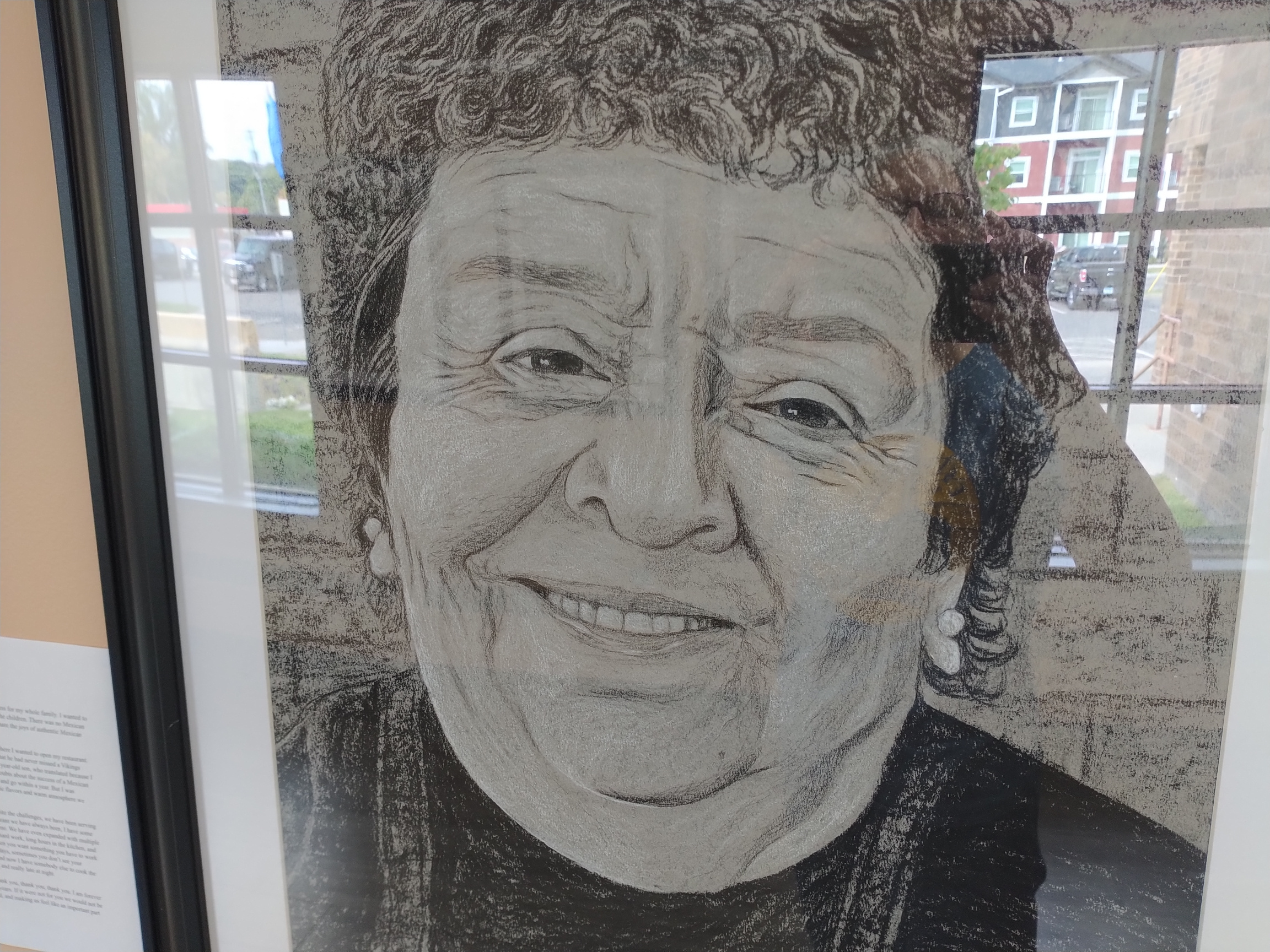I ALMOST MISSED IT. “Anonymous Mother’s Story” positioned next to “The Young Mother” charcoal portrait in the “I Am Minnesota” exhibit by Faribault artist Kate Langlais. But there it was, tucked in the corner near the light switches in the Paradise Center for the Arts main gallery.