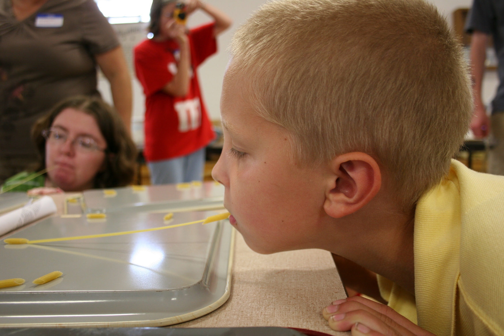 In another minute event, competitors maneuvered pasta onto spaghetti.