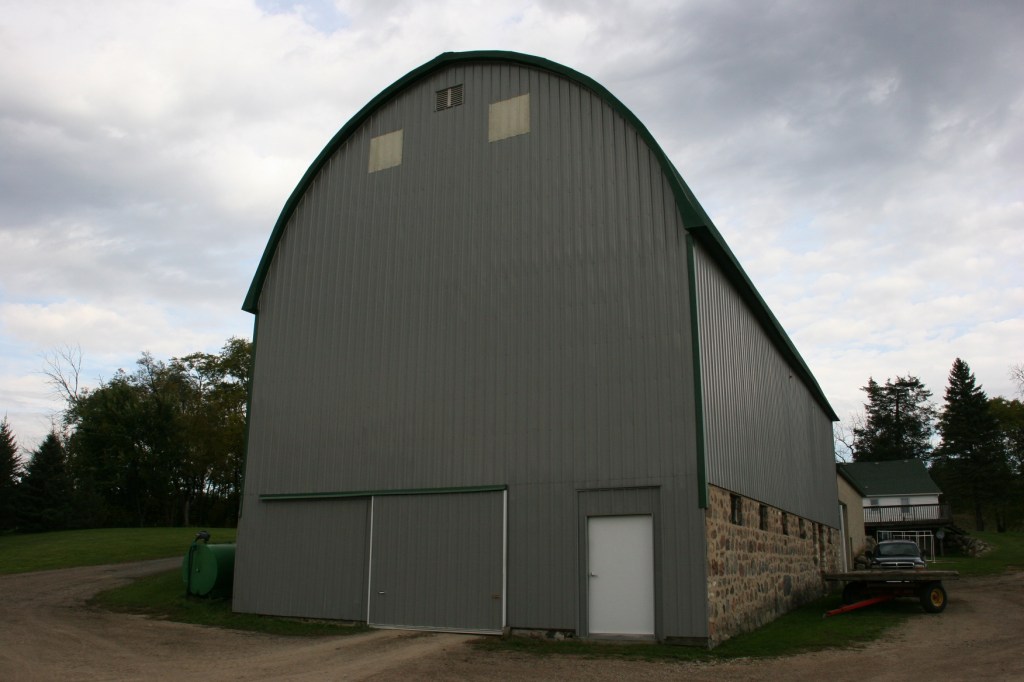 We edged Roberds Lake after trailing a winding gravel road past farm sites. Country drives are, by definition, about immersing ourselves in the country. Appreciating ripening corn and soybean fields, stately barns, ginormous round hay bales staged in a field… And then hugging the side of the road upon meeting a massive combine.