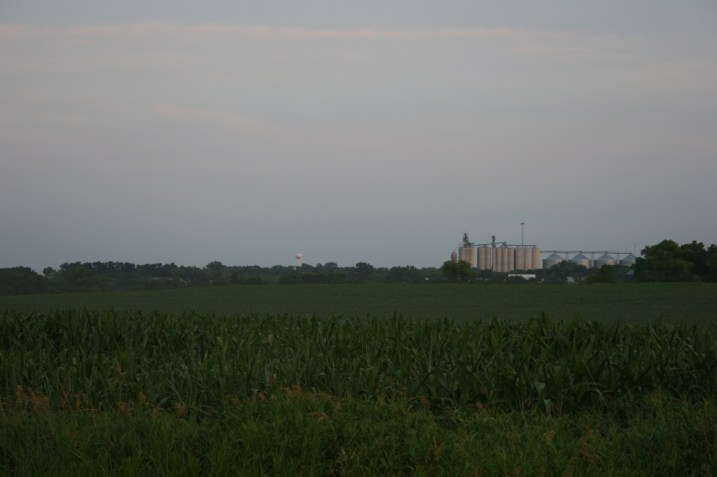 Standing on the gravel road, I turned south to photograph the cornfield and Lamberton in the distance.