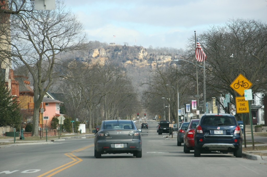 But it is more than utilitarian construction that marks this viaduct as noteworthy. The viaduct is a work of public art—an interactive sculpture which provides a sweeping view of historic downtown Faribault and the surrounding area when heading westbound. To view the bridge from below is to truly see its artsy side, its Art Deco/Classical Revival style. That style carries through in the concrete piers and, on road level, in the decorative railings and lights, replicas of the originals.