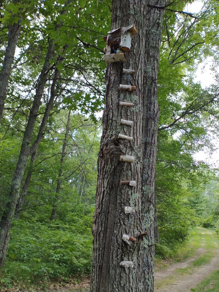 We walked at a fast pace. Any pause in movement brought Minnesota’s state bird, aka the mosquito, in to full attack mode. Still, several were successful in biting me. I stopped only to snap quick photos of several gnomes with my cellphone. There would be no lingering with my 35 mm camera, zooming in with my telephoto lens, during this visit. Nope. Gnomes may intrigue and delight me, but not enough to feed myself to the mosquitoes.
