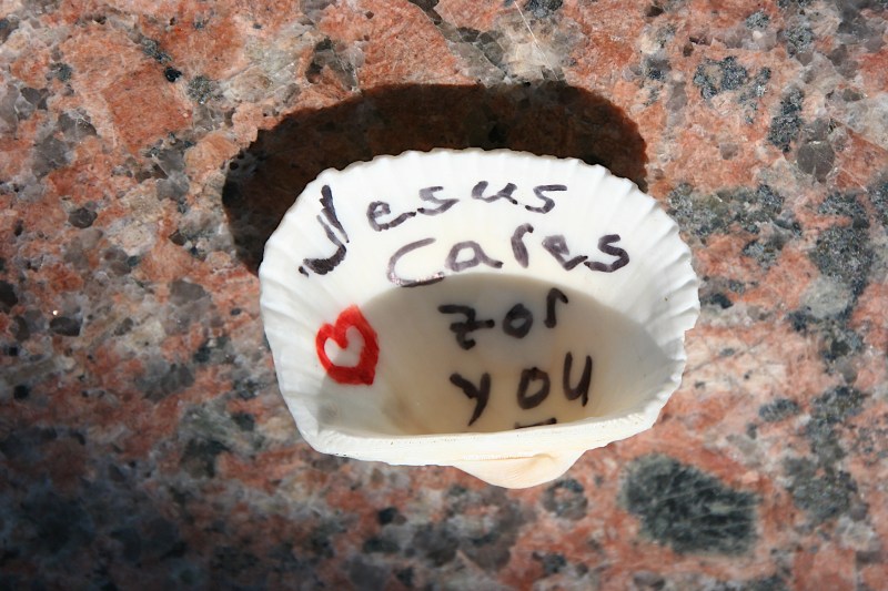 While walking around Mineral Springs Park, we found these messages on stones and a shell left in the park.