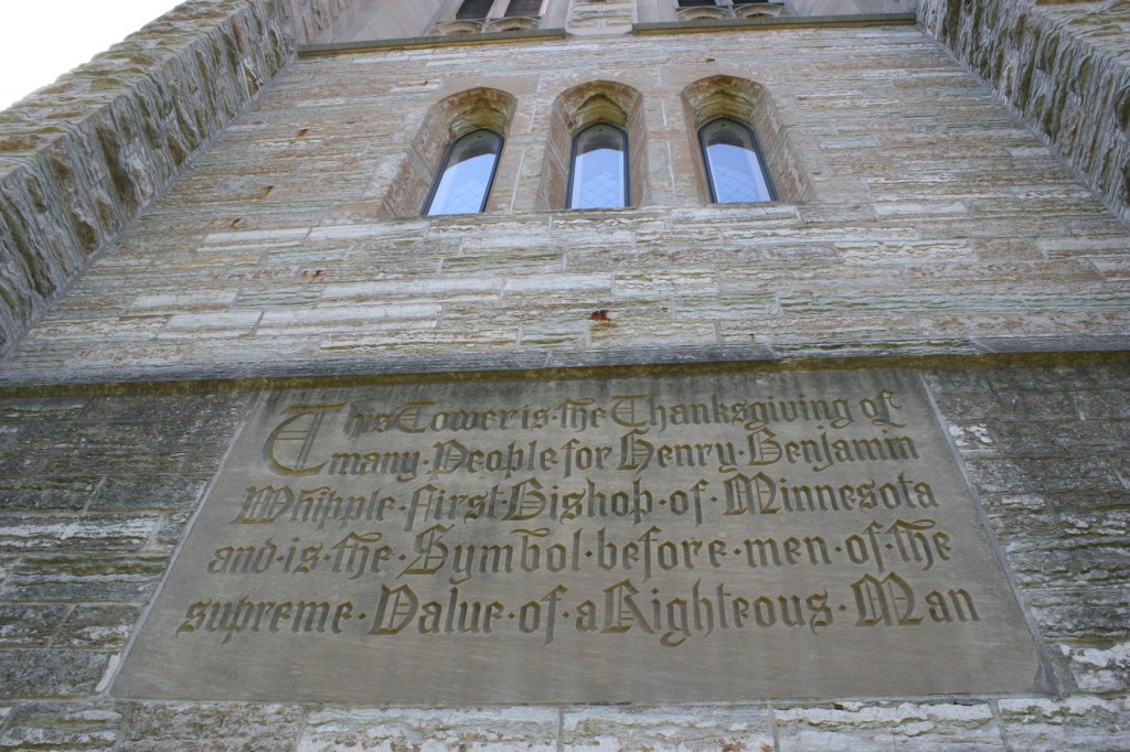 Walk around Faribault today and you will see many reminders of the work Whipple did not only locally, but across Minnesota. Historical markers and inscriptions about the bishop grace The Cathedral of Our Merciful Saviour, his faith base. He’s buried under the altar there. Across the street at Central Park, Whipple-themed murals cover the west side of the historic bandshell. Downtown, one of many history-focused benches honors Whipple. And across town, at the Chapel of the Good Shepherd on the campus of Shattuck-St. Mary’s School, a marker notes his role in founding Shattuck and other schools in Faribault.