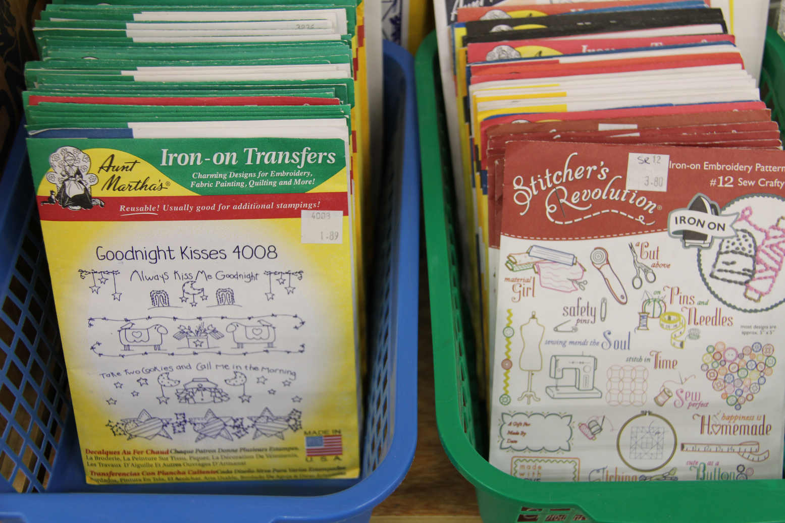 Then a stash of vintage collapsible fold-away baskets distracted me, temporarily pausing my fawning over fabric, yarn and embroidery patterns. The red, green and gold fabric and metal baskets with wooden handles are signature five-and-dime store staples.