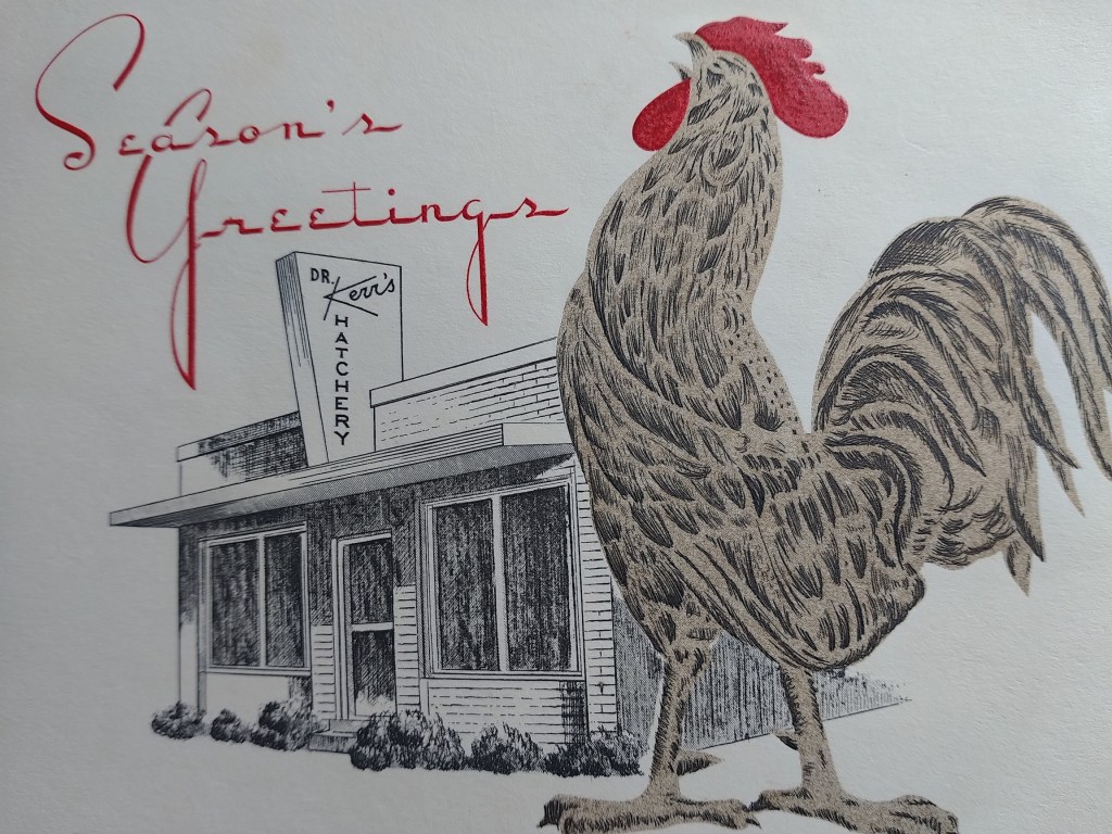 But, if you look closely enough, dig deep enough, ghosts of those businesses remain, including chick hatcheries. Among the vintage greeting cards my mom saved (she saved everything), I found a holiday card from Dr. Kerr’s Hatchery. That was in Minneota; that’s Minnesota minus the “s.”
