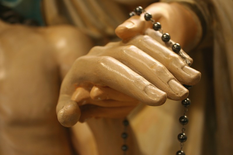 In the face of Mary, I see profound grief in losing her son, Jesus. Sculpture photographed at St. Mary’s Catholic Church, New Trier, MN. Minnesota Prairie Roots file photo.