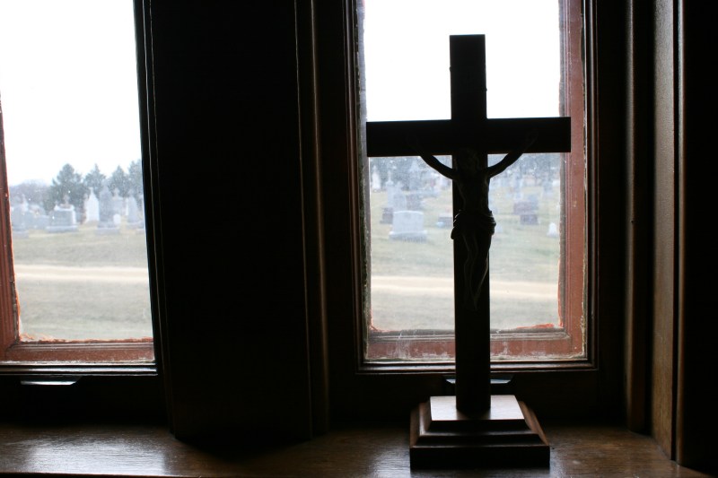Centering the altar is this depiction of Jesus’ crucifixion at St. Mary’s Catholic Church, New Trier, MN. Minnesota Prairie Roots file photo.