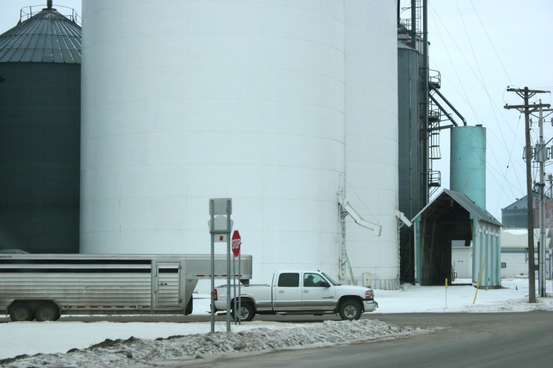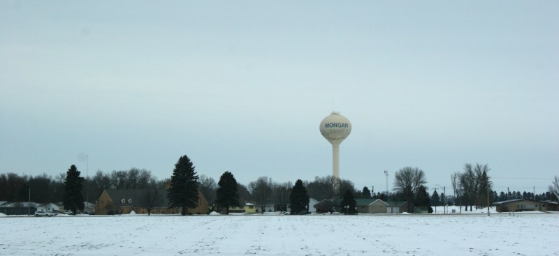 Or by the grain elevators and water tower in Morgan.