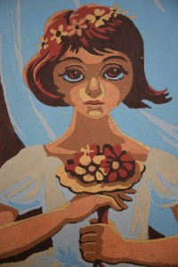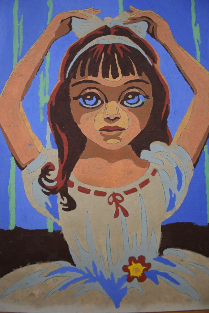 I purchased this stunning unframed 24-inch x 18-inch paint-by-number painting for a song last fall at a Wisconsin second-hand/collectible/antique shop. The scene reminds me of the Kentucky Derby. Interestingly enough, on the official Derby website store, paint-by-number horse kits are available for purchase.