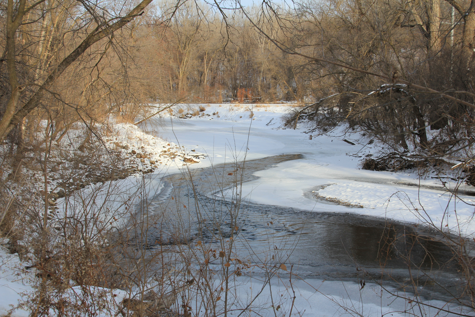 I especially delight in following the Straight River Trail because water, whether frozen or flowing free, mesmerizes me. I think humans have always been drawn to water. Near Fleckenstein Bluffs Park, the Straight River curves, winding through the woods, under the railroad bridge, along the bluffs.
