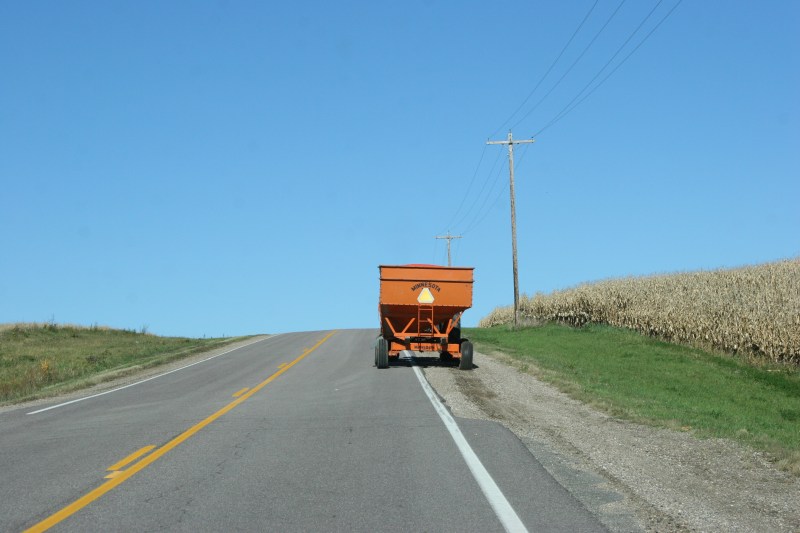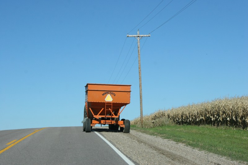 This proved news to me. But Randy noted that as we followed a tractor pulling a gravity box along LeSueur County Road 13 on Sunday afternoon. He pegged the wagon as 1970s vintage prisoner made.