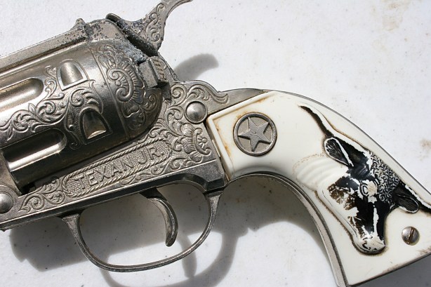 PHOTO D: Did you play with a cap gun as a child? I did. I played “Cowboys and Indians” with my siblings. I know that phrase is not politically correct today, but I was a child of the 1960s, the time of westerns. I watched Gunsmoke and Rawhide on television. And if we’d gotten more than one channel on our black-and-white T.V., I would have watched Bonanza, too. And, yes, I do remember life before television.