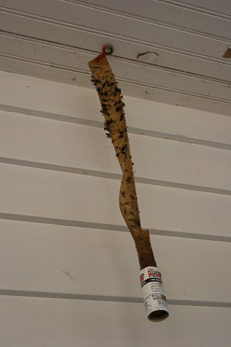 PHOTO B: Unfortunately, dear readers, I do not need you to tell me that this is a fly strip. Because I grew up on a dairy farm, I am quite familiar with this gross, sticky fly catching strip. One hung in our farmhouse porch where filthy chore clothes and manure-laden buckle overshoes lined the walls and floor. Another fly strip dangled over the Formica kitchen table as a rather unappetizing bit of home decor fly trap. But at least it kept the flies off our dinner plates.