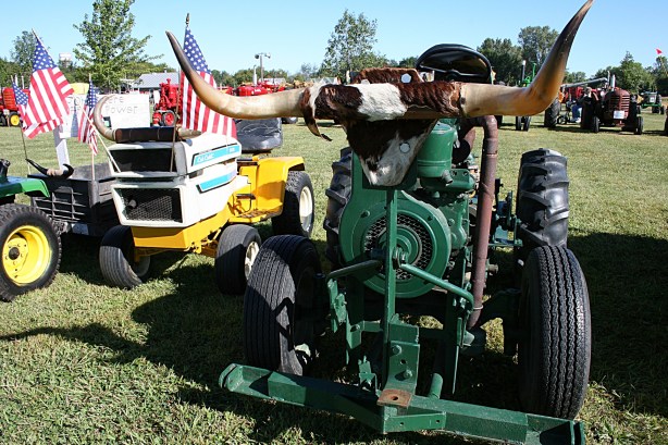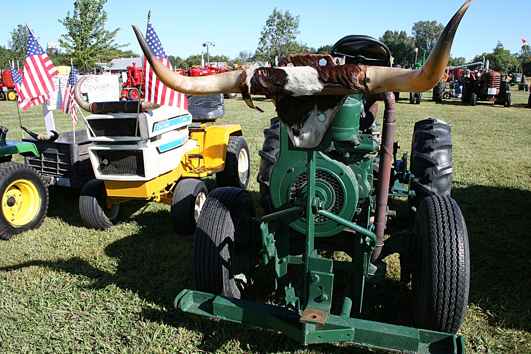 PHOTO A: What have we here, dear readers? Look to the left and scan to the right and you see horns on a wagon, a lawn tractor and an apparently handcrafted tractor. What is the meaning of this?