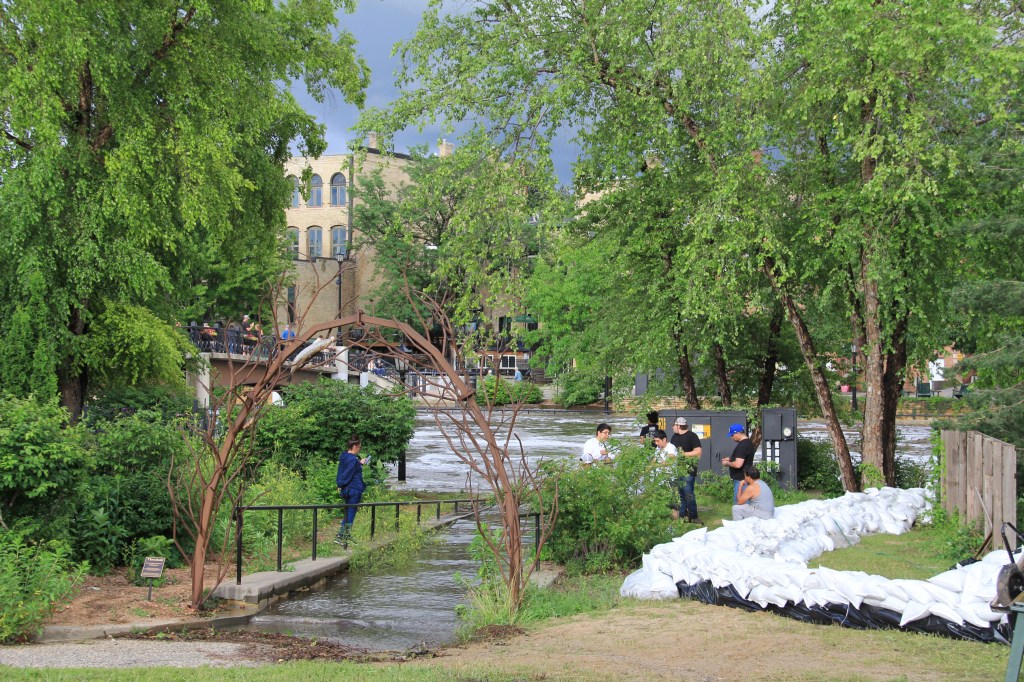 WE COME TO THE RIVER. The Cannon River, spilling over the dam by the Ames Mill. Roaring. Churning. Then flowing under the bridge and between the walls of the Riverwalk in downtown Northfield.